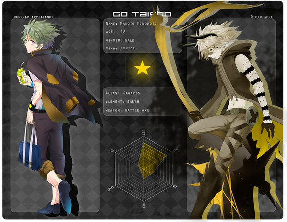 However, it may be the design that I'm most satisfied until now. I'm happy that it has been done xD I don't remember exactly why I designed him like this, maybe it was from the keywords and the emotions when I thought about him xD