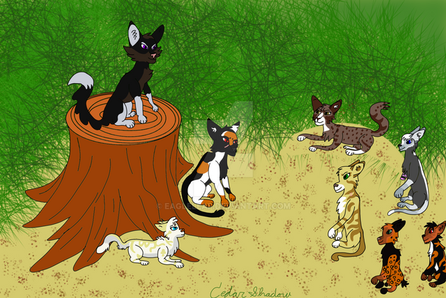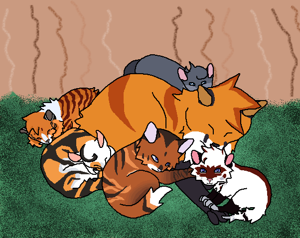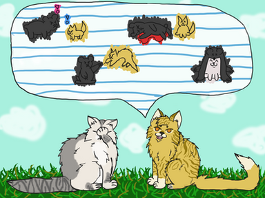 I chose two random apprentices from SeaClan to come along. They're having fun swimming in a pond while there's a mayfly hatching happening.