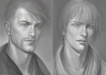 I also really like the detail you put into their clothing, all those folds, and how you used few lines for his goatee makes it look soft. Very awesome~