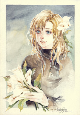 The girl looks stunningly like Linneus from the Teahouse comic in this colourless artwork. Though when we take a look at their color fullbody, it's clearly not the same. Beautiful !