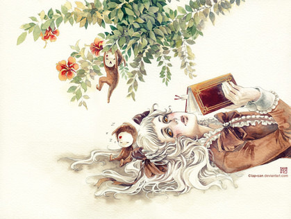 Anyway, really good drawing, I love the atmosphere of this piece and the doll-y yet creepy look of Loli Ruri! (really nice work on her curly hair, I'm in love!!) Great tribute ^__^