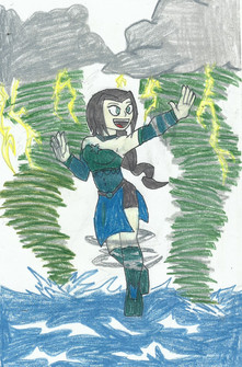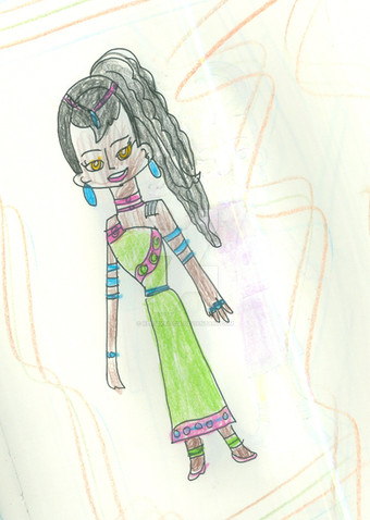 This was just a sketch of a costume alteration for kittyAnd thenI drew this and added an awesome background.