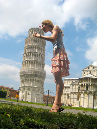 Its a good concept and a very nice shot. The sky is stunningly blue and she's postioned perfectly. Very nice.