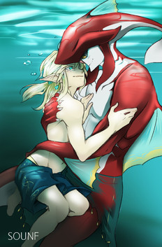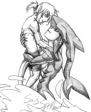 a gift for a friendo's birthday i made a while back, of Sidon from BoTW and their OC