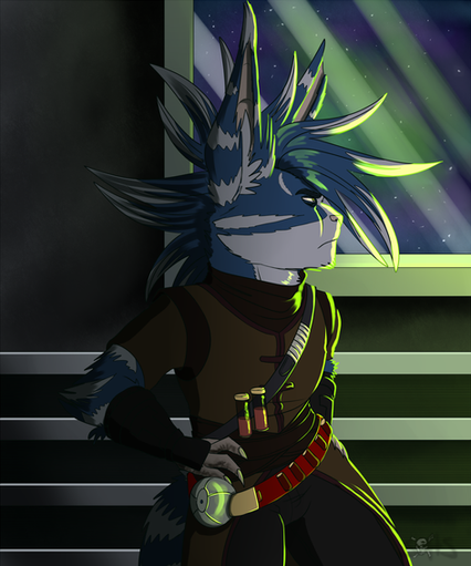 #alien #blue #dark #eight #furry #glowing #gray #industrial #male #programming #screens #shop #smoke #smoking #stripes #tech #warehouse #green_eyes #black_shirt #computer #kriat #classiceight #kriat_taas