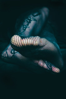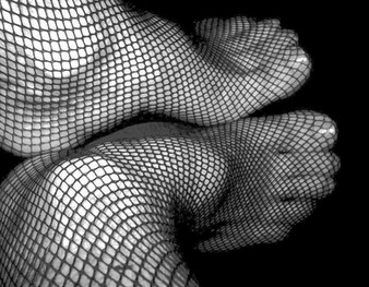 This photo is very interesting. I like the idea you're portraying here. Someone below said it's sexy without being trashy, and I completely agree. This photo is attention grabbing due to its seductive nature (some people really like fishnets), yet its conservative and innocent at the same time due to the model's pose. I really like the shot because theres very intricate detail, because of the fishnets. But because of that, I wish it was a tad bit sharper because otherwise there isnt a huge distinction. The mind likes to work with color (which doesn't apply to this photo because its black and white, I'm a fan of them though so don't worry) and it also likes to work with sharp distinctions. Though the eyes do pick up, and signal our minds, that there is the obvious distinction between where the skin is, and the fishnets, it is signaled in somewhat of a lower quality because it isn't a bit more obvious. I hope that makes sense.