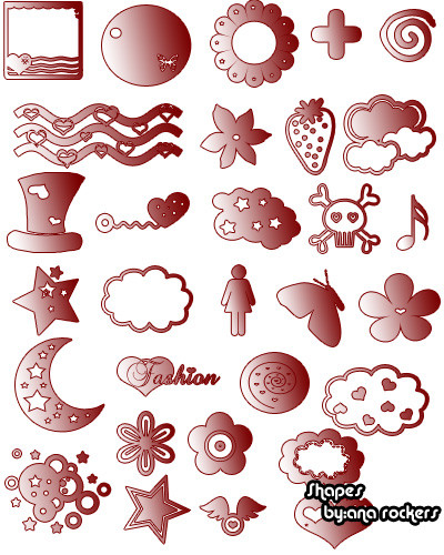 Pacote com 18 shapes diversas para Photoshop CS2 acima. Em formatos de .CSH e .PSDOs créditos são necessários. Obrigada pelo download (;