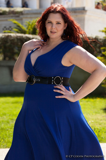 Sophisticated dame with awesome curves. Beautiful blue dress.