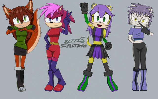 More concepts for my Amy solo adventure idea, here are some of the characters that I think would make for great interactions and stories.From left to right we have: Amy Rose (adventurer), Tekno the Canary (mechanic), Mina Mongoose (popstar), Honey the Cat (fashion designer), Breezie the Hedgehog (business mogul)