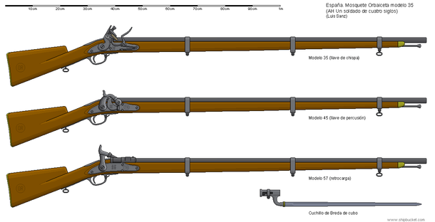 The Baker Rifle nominally remained a limited issue weapon, and the Brown Bess was still in great use until the advent of percussion cap weapons.