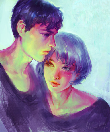 #blue #contrast #digital #ginger #girl #lineless #model #orange #painting #sai #semirealism #digitalart #digitalpainting #portrait #semirealistic #painttoolsai