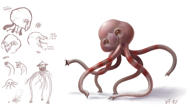 So my friend was playing Spore today and I decided to do a rendition of his creature. Here it is at the very beginning of its terrestrial evolutionary story. I'm guessing the eyes on its ass serve to protect it from ambush. I love Spore. If only EA didn't go and screw it up.Related content
