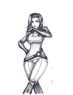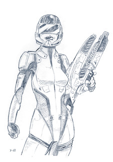 A fanart sketch of Commander Shepard from Mass Effect 3. This was done in 15-minute increments over the course of 7 days, with today being the seventh day (finished the legs, did some minor touchups, and went back over the hair).Medium: Pen (cheap ballpoint