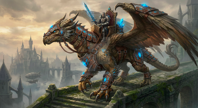 #dawn #man #animal #armor #attack #cape #city #commission #creature #design #eagle #fantasy #hippogryph #landscape #lion #magic #medievalfantasy #mount #mythology #power #ride #soldier #sword #weapon #wings