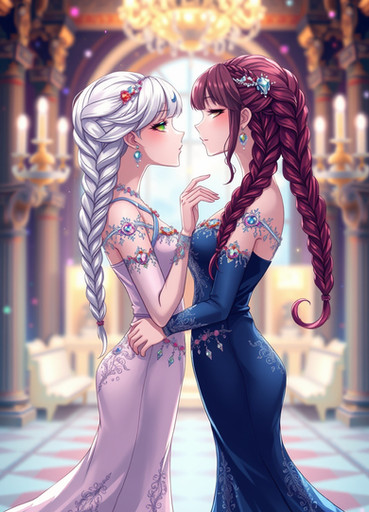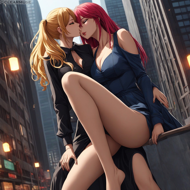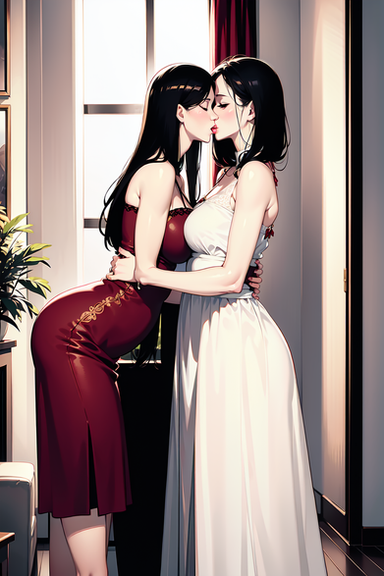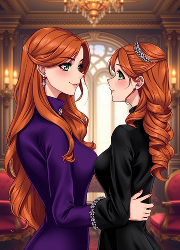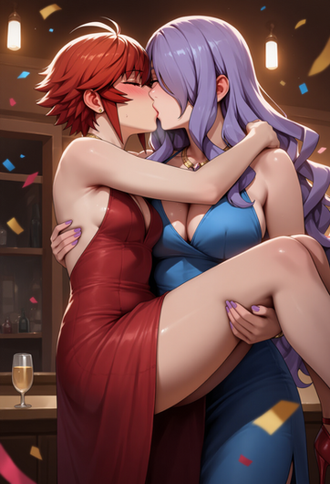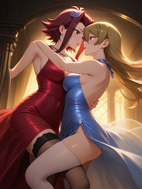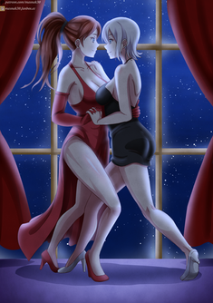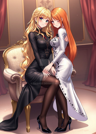 #fanart #dress #redhair #anime #animegirl #bedroom #couple #hug #lesbian #lgbt #lgbtq #love #romance #yuri #lesbiancouple #lgbtqcharacters