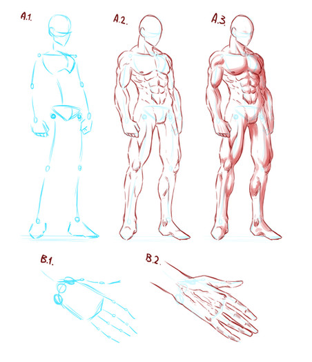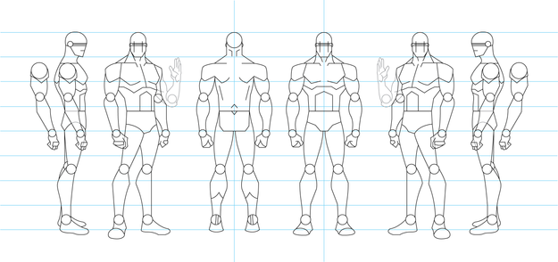 7 and 8: now I see that the lower arms invade the chest space, so I choose in "shape A", a circle, move it to where the lower arm invades the space and create an inverted clone