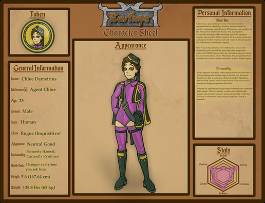 - Aria (Acqiantance) - A fellow rogue whom she only encountered once, but that encounter made Terry decide to try and learn sneaky techniques and cutthroat tactics. Terry looks up to her as an example and hopes to meet her again someday.