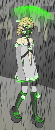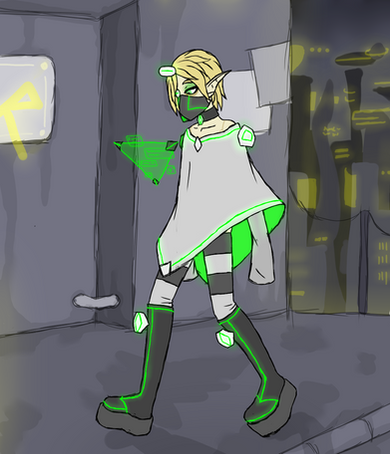 Fighting style and/or special skills and abilities: Riel primarily uses her hacking skills and knowledge on magic to disable and debilitate opponents and isn't afraid to use dirty tricks as she isn't bound by honor and stuff. Though she is weak and acts primarily in a supportive role, she can dish out a lot of damage due to her weapon drawing from her vast Mana reserves as a Lumine heir.