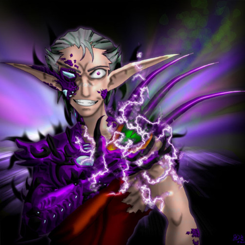 My first art of 2010, wooo! Not the very best I could do, but the effect is there nonetheless. ;DThis 'ere is First One, the first Ender the party in my RP encountered. The Enders are a species dedicated to change, destruction, and all things Dark in their conquest of the galaxy. First One was bred as an 'Emissary', a diplomat to those who'd rather wish surrender before death, and evoke fear within each encounter. The Enders, in their supposedly infinite malice or perhaps efficiency, designed the Emissaries to be a blend of all encountered races in the Orion arm. Draken, Human, Roshan, Kaoshin, Erudiite and Oanne, with a touch of the Ender's own mutagenic Dark Eco properties.