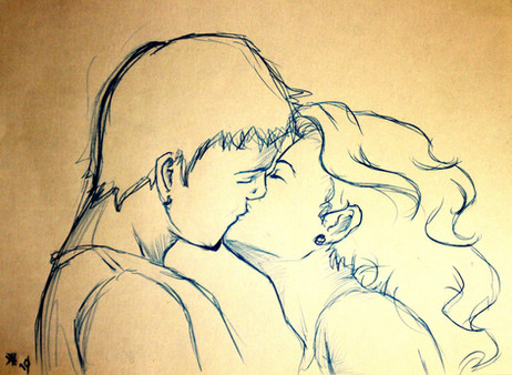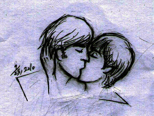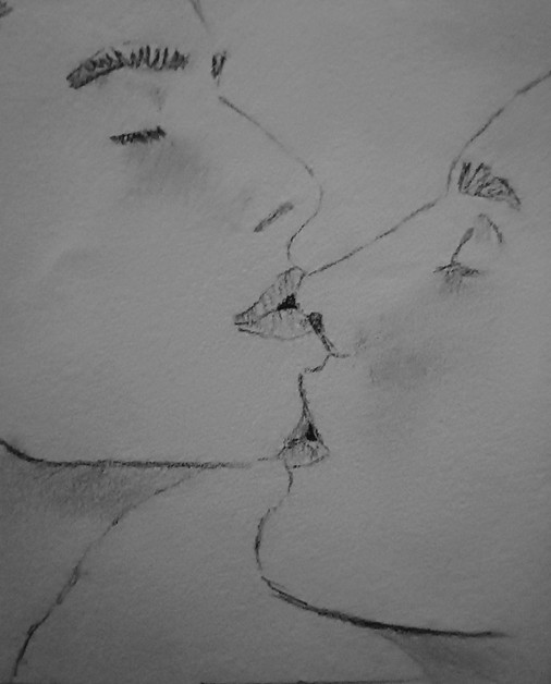 Yeah I have kinda noticed that when people kiss there chins make a heart. I think its cute! Very nice job with the picture!