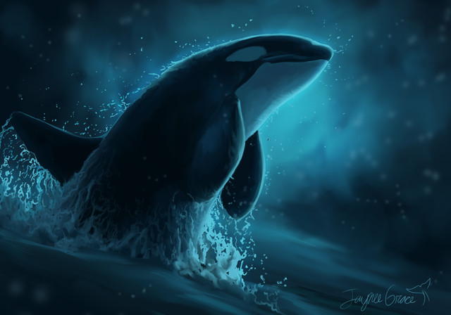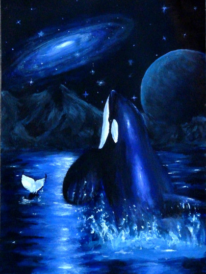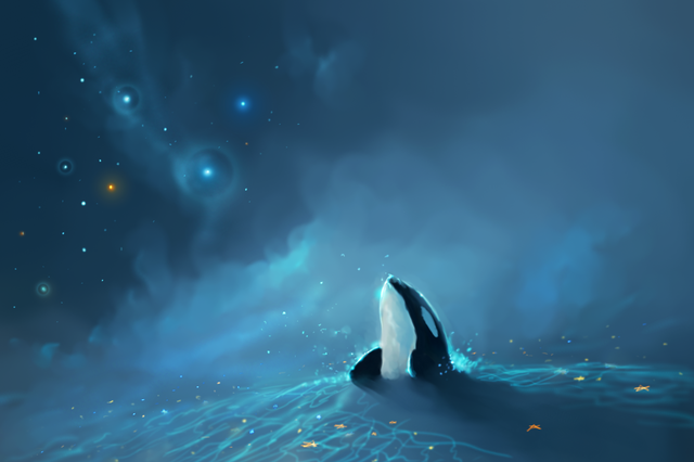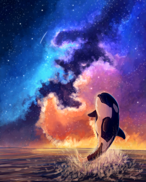 Sorry for more cliche space + cetacean art, I can't help it! Too much fun. And this is actually the first time I've drawn an orca, come to think of it. Tried to give this nebula a sort of watery/wave-ish feel, hope that came across. I recently got a new job that's more heavily art-focused, so I hope to be creating a lot more in the future!Corel Painter X + Wacom Intuos tablet.