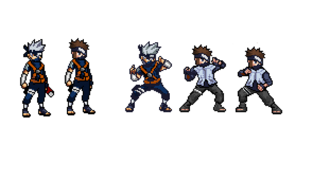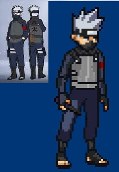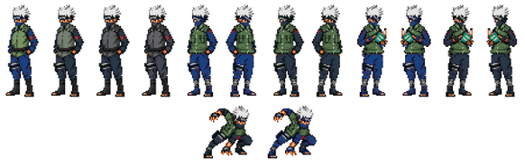 help me make this better i think we should work on a Kakashi sprite sheet this is just an idea sprite cuz im not the best so if anyone would like to edit these sprites and make them sheetable that would be awesome but ask first though plzCredit to me and the original Kakashi spriter for the headband and the hair lol