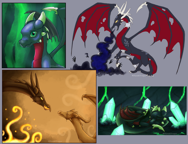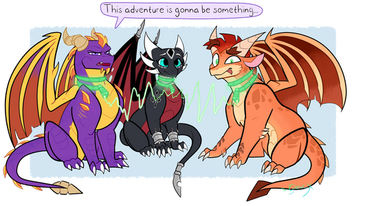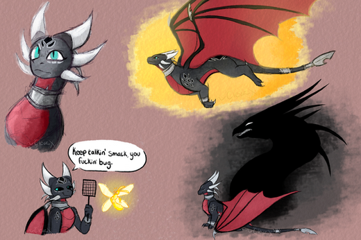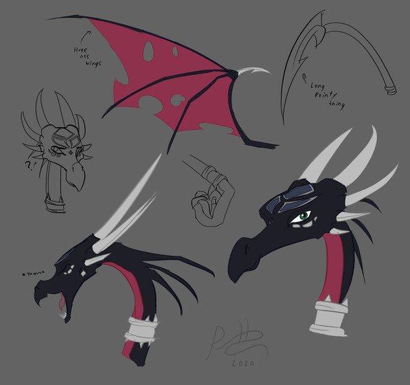 From her concept info, she was a wind dragon but due to her corruption, it turned her scales black and red. Wanted to show some of her original colors merging with her stained scales.Β That and I gave her lil booboos from her braces and she has metal bits attached to her (her tail/wing tip and 4 of her horns). I imagine all of this was done to her to make her more powerful while she was corrupted and forced to serve MaleforΒRelated content