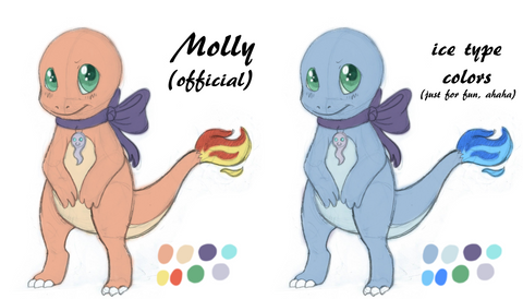Paw was originally going to be 'Tori's partner. When I decided to keep both Molly and 'Tori, Paw was gonna be a recruit of some kind, but I decided to cut down on characters and make him Molly's partner instead. The Smeargle idea is new... I don't get new ideas often anymore, but it's nice when I do!