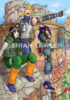 Extra Infomation: The next Chuunin exam is coming up for Nuka, and his teammates have vowed not to let anything get them kicked out. Tetsu objects to him going, but Nuka's Sensei has made the final decicions. Nuka is at a Chuunin level aswell as his teammates, but they want to get through the exam to proove it. Nuka is left handed and not vry skilled at throwing small shurikens, but the straps around his chest hold five large shurikens on his back during Missions, which he finds easier to throw. Nuka's personality is fairly simular to his brothers, because he has no influence from his parents, and he get's jelouse of Tetsu's girlfriend sometimes. Nuka always has girls talking to him, because he's fairly good looking for his age and his personality is so loveable.He's always optimistic and can plan ahead easily in battles and use the environment to his advantage. There are no girls he likes, and the one on his team (Sairi) is a loudmouth and swears alot, his other team mate(Tomo) is always challenging the teacher and making bets with Nuka about who will do the best on the missions...Tomo always nominates himself.