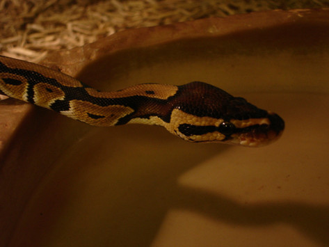 This is a close up of my ball python's head. her name is Meerah and she is an 07 baby. I think she's very cute peeking over the covers of my bedRelated content