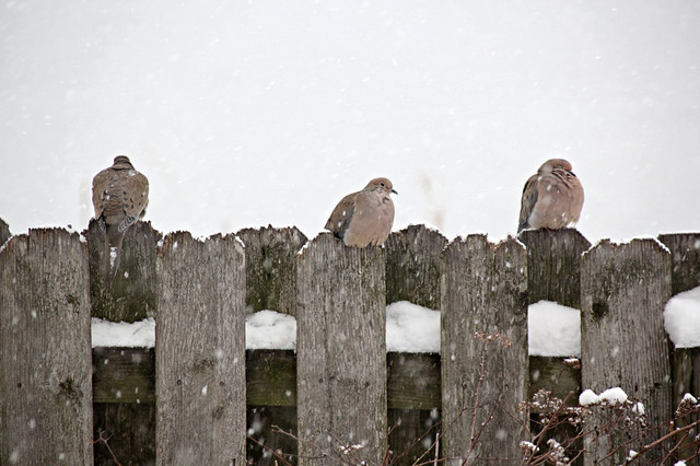 Doves will suffer the storm with an elegance that reminds me of the fertile shape of small boats, as the snowflakes melt on their feathers and glisten in small drops. What brave hearts they have, sufficient to their soft beauty. At last she flew, when I put out seed for her. And now she dines, having waited, as you see, so patiently.Related content