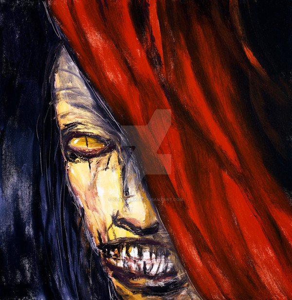 very wonderful. i have always loved your pieces.what medium do you use on these? this could have so many different meanings depending on who is looking at. it conveys a bit of fear and sadness and yet a hidden mystery all at the same time. your artwork is truly beautiful in the most wonderful sick and twisted way.<3