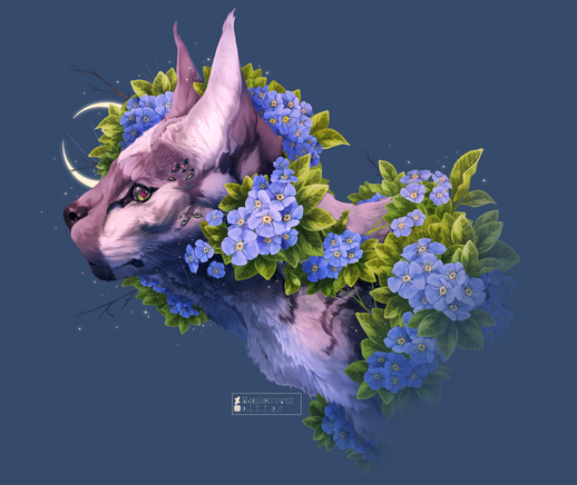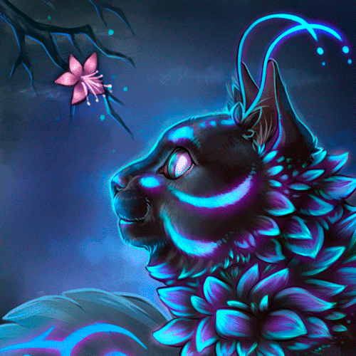#animal #blue #cat #cheetah #commission #flowers #fur #glow #horns #moon #nature #night #painting #portrait #clockbirds