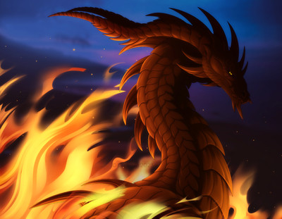 I think the orange in this piece is not "glowing" enough, it's a bit hard to see if they're lava/ fire or they're just patterns on the dragon's body
