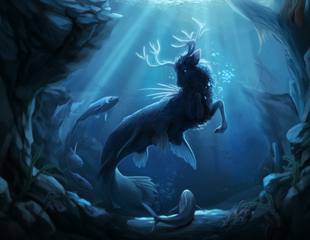 Oh my god, gorgeous! I love the way the water was done and the way the antlers/horns leaves are shown and shaded! Has to be one of my favorites.