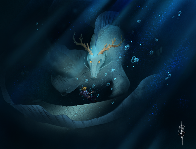This is so beautiful! I love how you did both perspectives instead of just shrouding your dragon ocs body with the water!