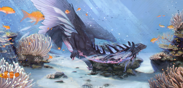 Imagining how this all went down aside, the art is amazing as usual! You outdid yourself on the underwater background bits there is a lot of detail there that adds so much depth to the image that most people won't even really notice at first! I think my favorite part though is Emphia's horns, they are a lot more natural and rough looking especially with the plant growth and I love it a lot ahhhhhh-!
