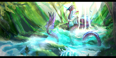 #dragon #forest #grass #green #nature #trees #water #clockbirds #medibangpaintpro