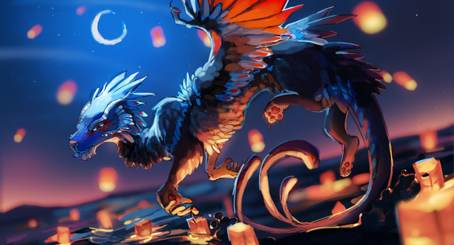 #fur #sky #birds #canine #dog #lanterns #nature #night #sea #speedpaint #water #wolf #clockbirds #medibangpaintpro