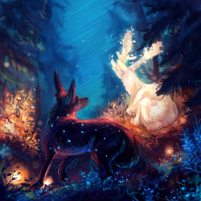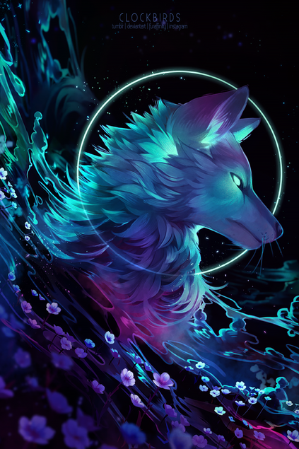 #clockbirds #canine #dark #dog #forest #galaxy #nature #night #space #speedpaint #stars #wolf #medibangpaintpro