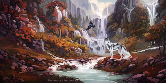 #wolf #background #cliffs #digitalpainting #environment #fantasy #nature #speedpaint #trees #waterfalls #clockbirds