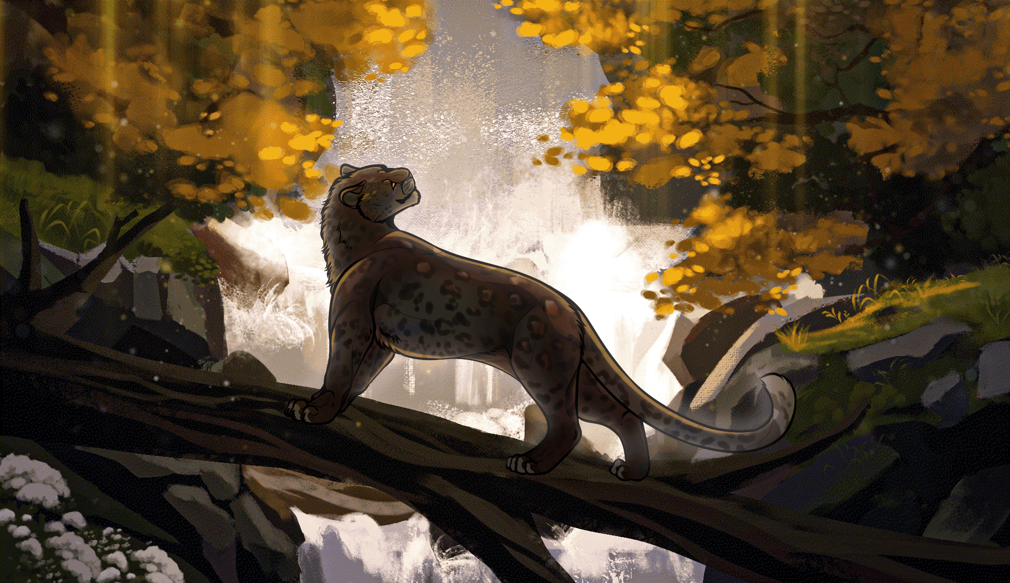 #animal #bush #mountain #nature #river #rocks #speedpaint #tasmaniantiger #trees #waterfall #clockbirds #medibangpaintpro