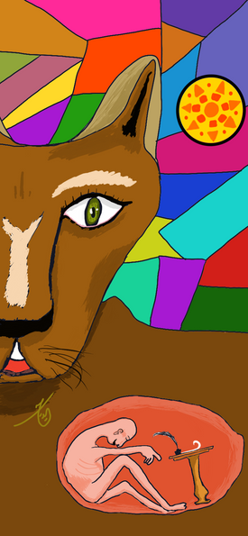 A baboon came to class and I forgot my camera. This is a colourization of the best sketch I was able to get (he kept moving around). Originally he was sitting on his keeper's shoulder, but since I'm lazy and not so good at drawing clothing I substituted the person for a ball.Related content