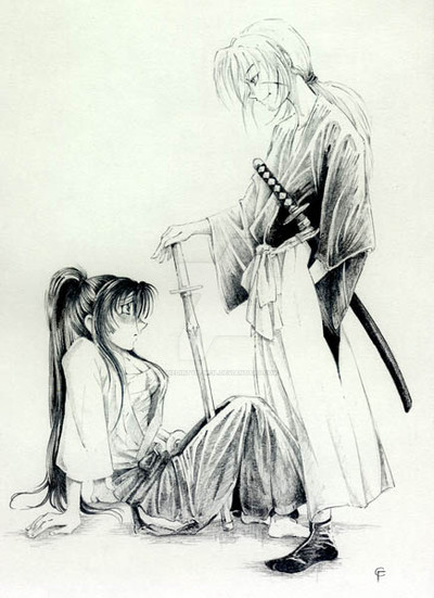 That's so true it's ridiculous. The art is so beautiful but I can imagine Kaoru and Kenshin acting very awkwardly around each other, learning to love one another and support each other too you know?