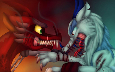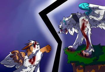 This was going to be part of a MAP (my part was just two paintings, but I never managed to get the second one done) and I thought it worth posting. Because after struggling through art block trying to drag me down, and then going to my grandma's house without a computer (I also became sick during that time, which makes things harder) I didn't manage to get this done even on my one week extension. D':So, erm, here... I'm actually kind of proud of it.