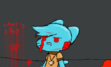 I'm going to pretend that he survived this. And that isn't blood at all, he just happened to land on a pile of tomoatoes and is a bit delirious from the fall. That all. No sadness here.