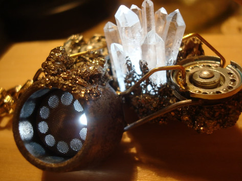 as a photo I'm pretty happy with this one. The background is this wack gear I got given in exchange for lending some jewelry to a small film shoot. Alas, never did see the finished project.The actual necklace is quite nice - very kind of cyberpunk. all that gleaming steel.......... the ball bearrings are part of a bike - its usually covered in grease and inside your pedal mechanism.
