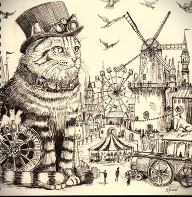 #blackkitten #cat #catart #kitten #blackcat #catpainting #clockwork #painting #paperwings #steampunk #watercolor #watercolour #wings #steampunkart #steampunkarmor