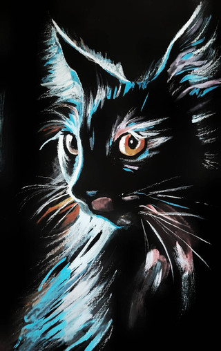 I love how his fur is bleeding into the background. Very creative and well painted. Great job!! Thanks to Aeiries for pointing this out.