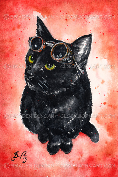 #blackcat #blackkitten #cat #catart #keyhole #keys #kitten #lock #steampunk #clockworkart #steampunkkitten #catpainting #painting #watercolor #watercolour